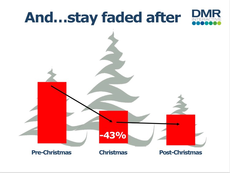 The real challenge starts on December 26. The week after Christmas and the first weeks of January are critical. And it's prime time to be promotionally active.