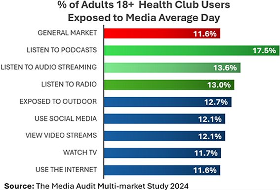 As the fitness industry heads into 2026 with projected growth of 8%, new research suggests audio platforms -- particularly radio -- may offer advertisers a disproportionate share of health-club users.